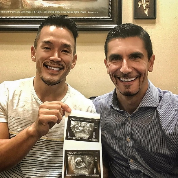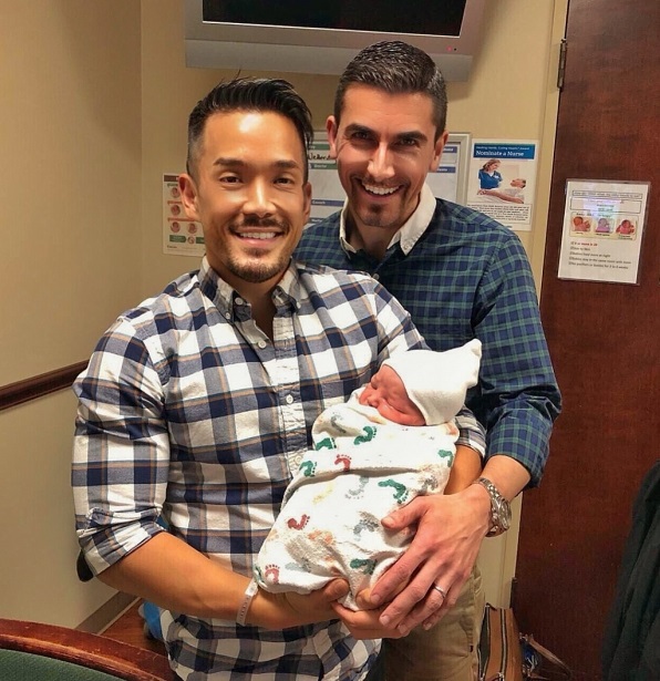 Cặp đồng tính Johnny và Sebastian (Mỹ) đã vô cùng hạnh phúc ngay trong khoảnh khắc bế con trai nhỏ chào đời sau suốt thời gian dài tìm kiếm người mang thai hộ.